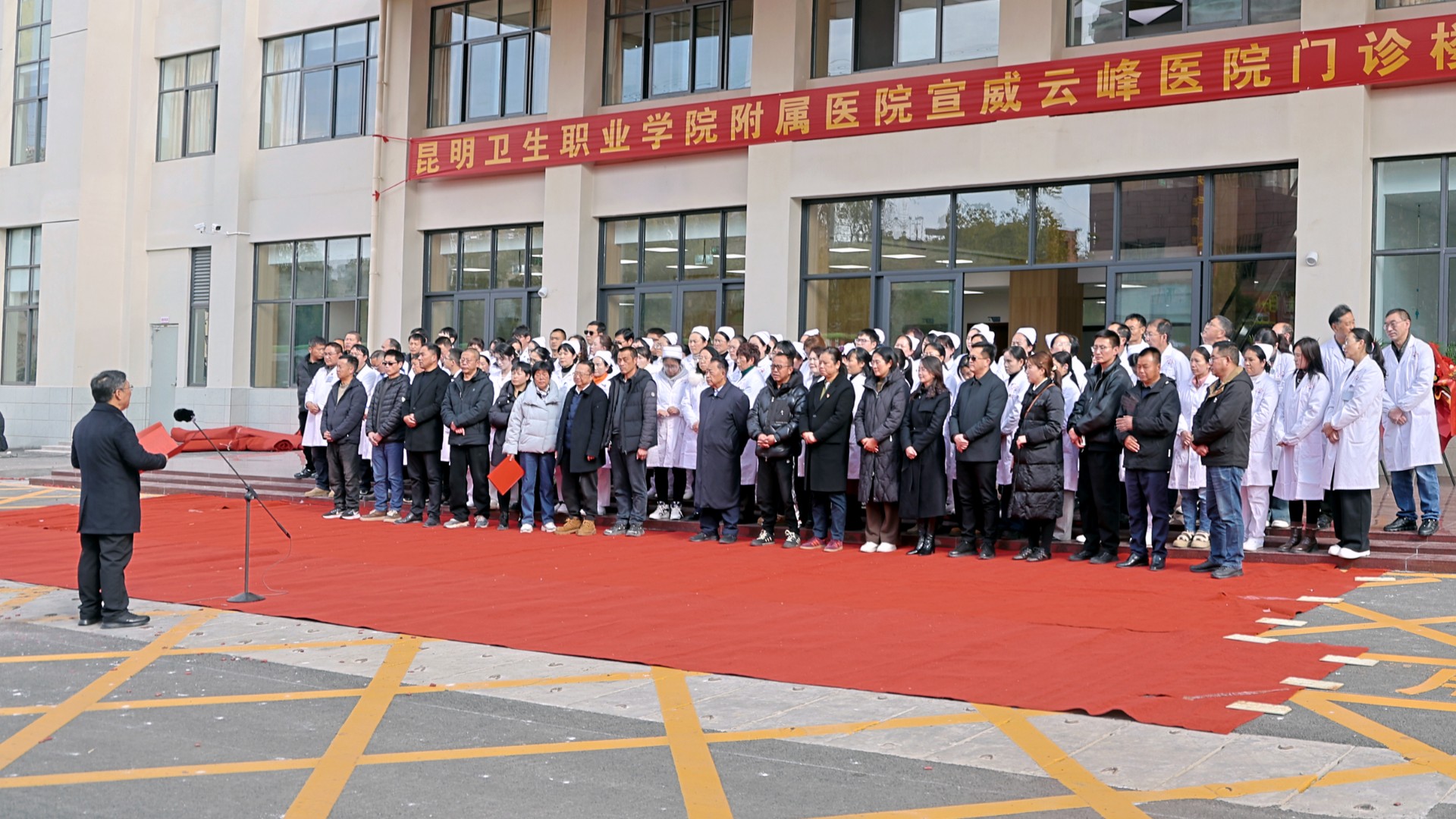 龙正昌在讲话中对新楼落成搬迁表示祝贺,对医院在医疗服务、人才培养、公益惠民等方面的贡献表示肯定。他强调,医院要以此次搬迁为契机,秉持“患者至上、生命至上”理念,强化医疗质量、规范诊疗管理,守住医疗安全底线,同时依托学院资源优势,推动教学、临床、科研一体化发展;要优化服务流程,打造优质医疗健康平台,为健康云南、健康宣威建设注入新动能。