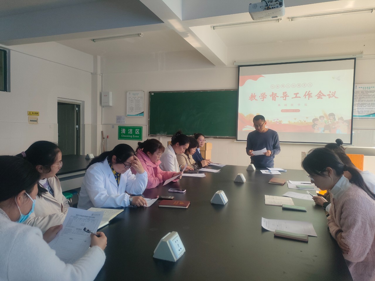 会上,罗副院长详细阐述本学期督导工作的目标和重点,强调要以提升教学质量为中心,围绕日常教学秩序、内容熟练度、治教严谨度、思政元素融入等多方面开展督导。他要求教师们要做到及时发现并解决教学过程中出现的问题。