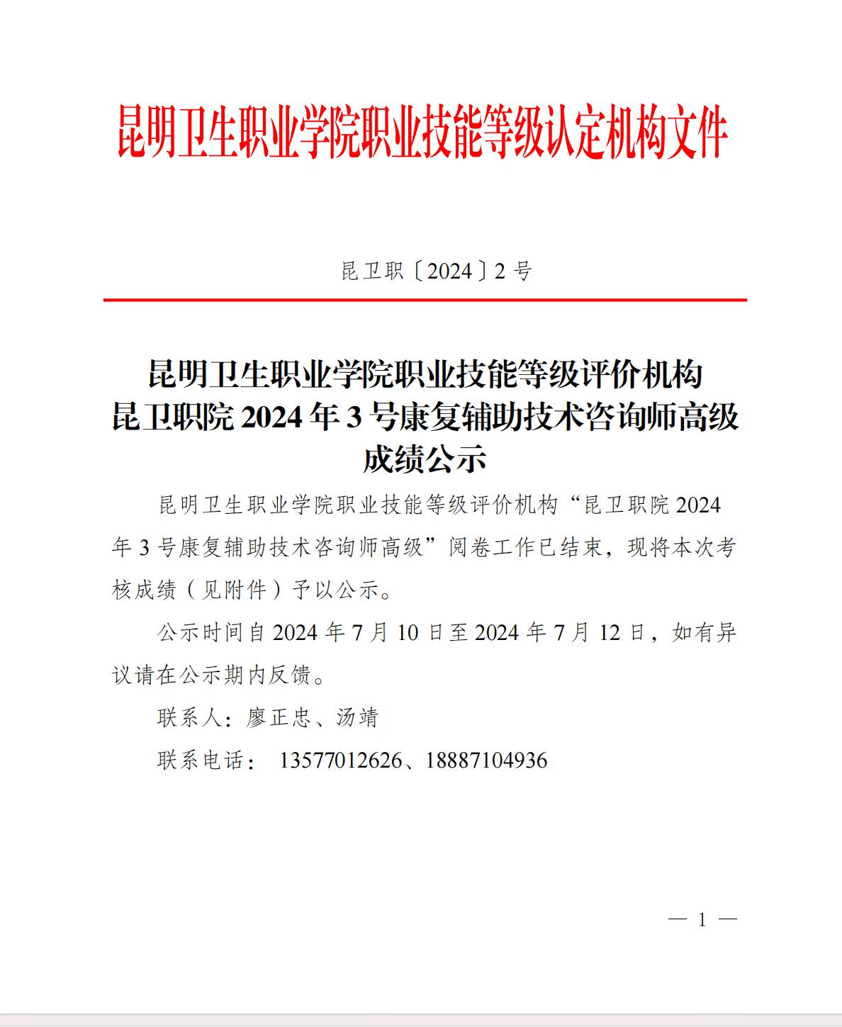 星空彩票手机app软件下载苹果职业技能等级评价机构昆卫职院2024年3号康复辅助技术咨询师高级成绩公示