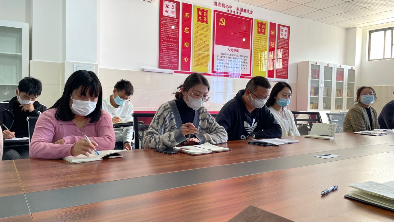 首先,支部书记杨登光发言,他指出:报告主题鲜明、思想深邃,是一个明晰国际国内大势、标定时代坐标、奠基未来发展的报告,是一个充分彰显历史自信、历史主动、历史担当的报告,是一个极具政治感召力、理论穿透力、实践引领力的报告,我们将把学习宣传贯彻党的二十大精神作为支部的首要政治任务。