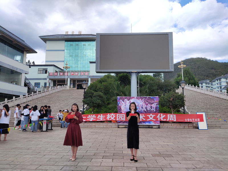 阳光明媚,微风和煦,大学生艺术团迎来本学期最后一期文化周。大学生艺术团校园文化周表演活动于6月12日在大屏幕下进行。